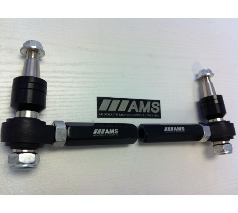 AMS Front Adjutable Tie Rod ends enable correcting bump steer (due to modified caster or lower arm angles) through tie rod end pivot relocation. Multi way adjustable through the use of shims. Street and strip application.
